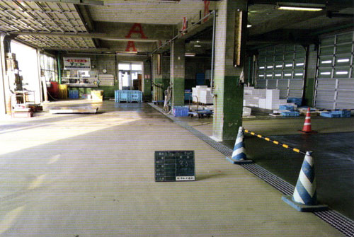 セメントコンクリートの2.5~3.0倍の耐摩耗性をもち、スパイクタイヤを装着した大型トラックの出入りする市場の床にも使用されております。