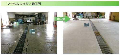 マーベルレック防滑耐摩耗モルタル工法RM-05-TSは高強度、耐久性に優れ、効果収縮をゼロに抑えた特徴を活かし、摩耗に強い転炉スラグを骨材とした耐摩耗を重点にした床材です